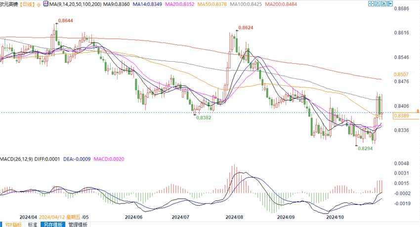 北京时间11月4日 ,欧元兑英镑报